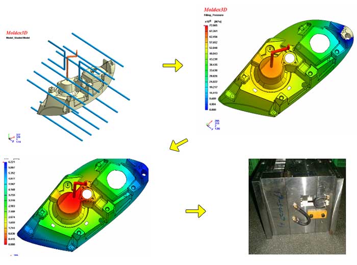 We use PP/ABS to mold body of the light, use transparent PS for front cover of the light (High Light Transmission Ratio), and use BMC (vacuum electro-plated) as the light reflecting mirror. Plastic welding (by ultrasound, friction welding or hotplate welding) is used to assemble parts together.